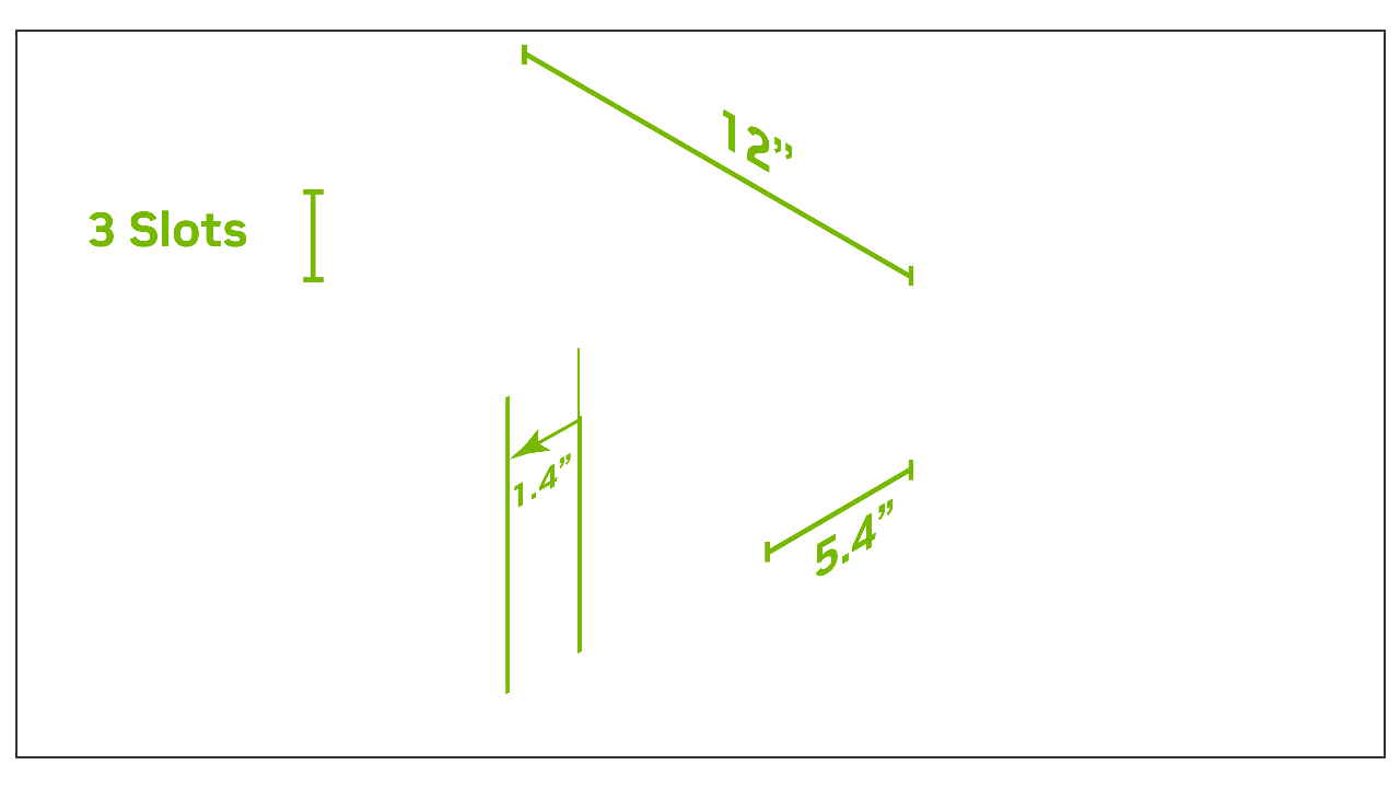 Clearance: Must have space for 12" (304mm) x 5.4" (137mm) x 3-slot card (61mm). Plan 1.4” (36mm) additional space for power cables.