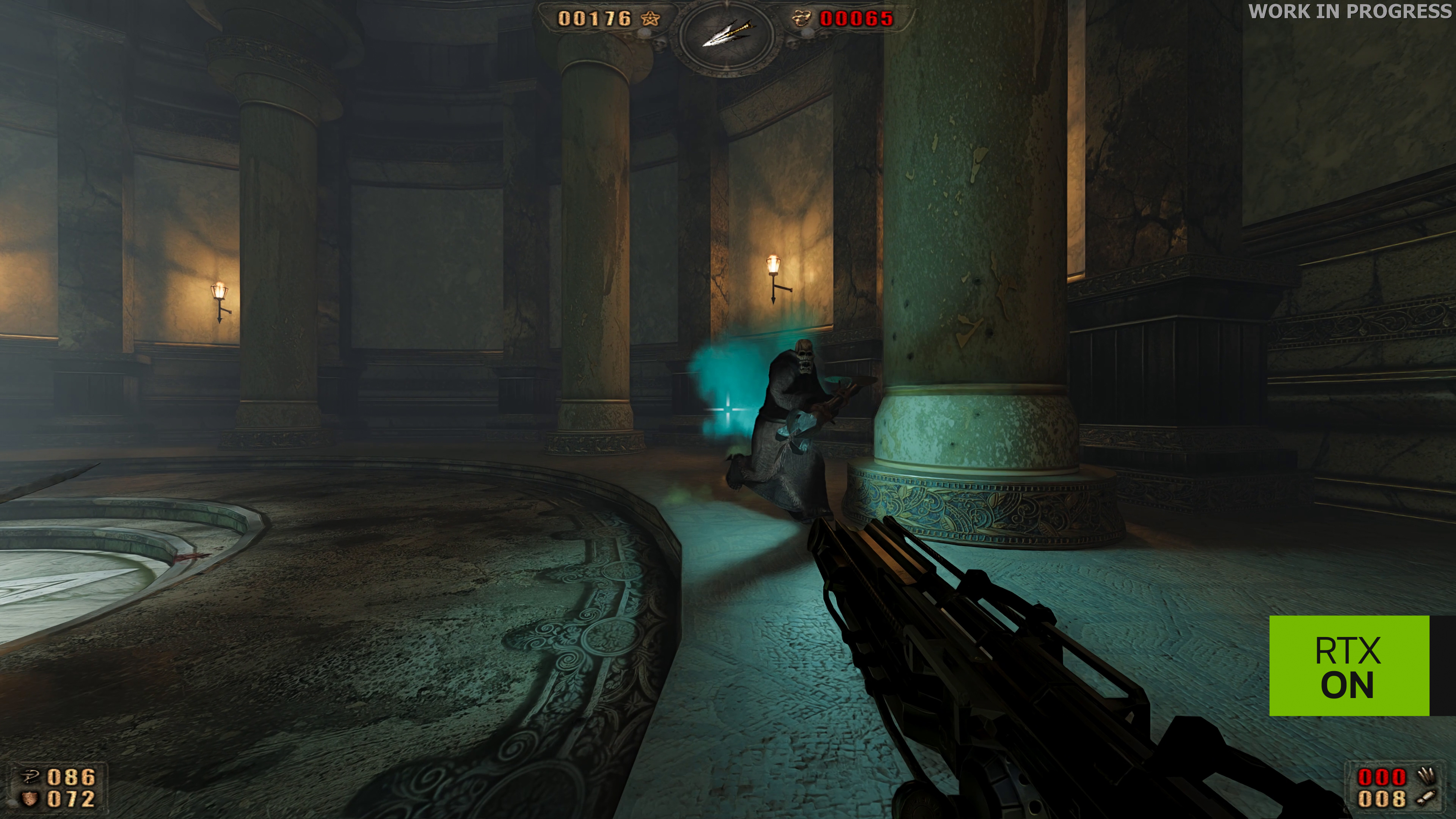 Painkiller RTX Remix 以其众多 RTX 特效震撼了评委。资产充分利用视差遮挡建图和重塑几何体,与路径追踪相结合,导致裂缝和其他瑕疵出现自身阴影,将材质注入真实的历史场景氛围中。