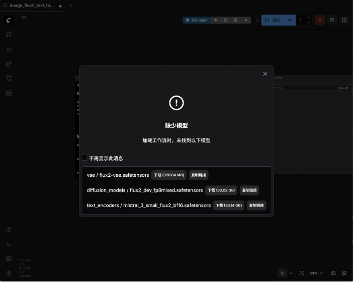 - 选择该工作流,ComfyUI 将重新加载,并自动提示下载缺失的模型权重。