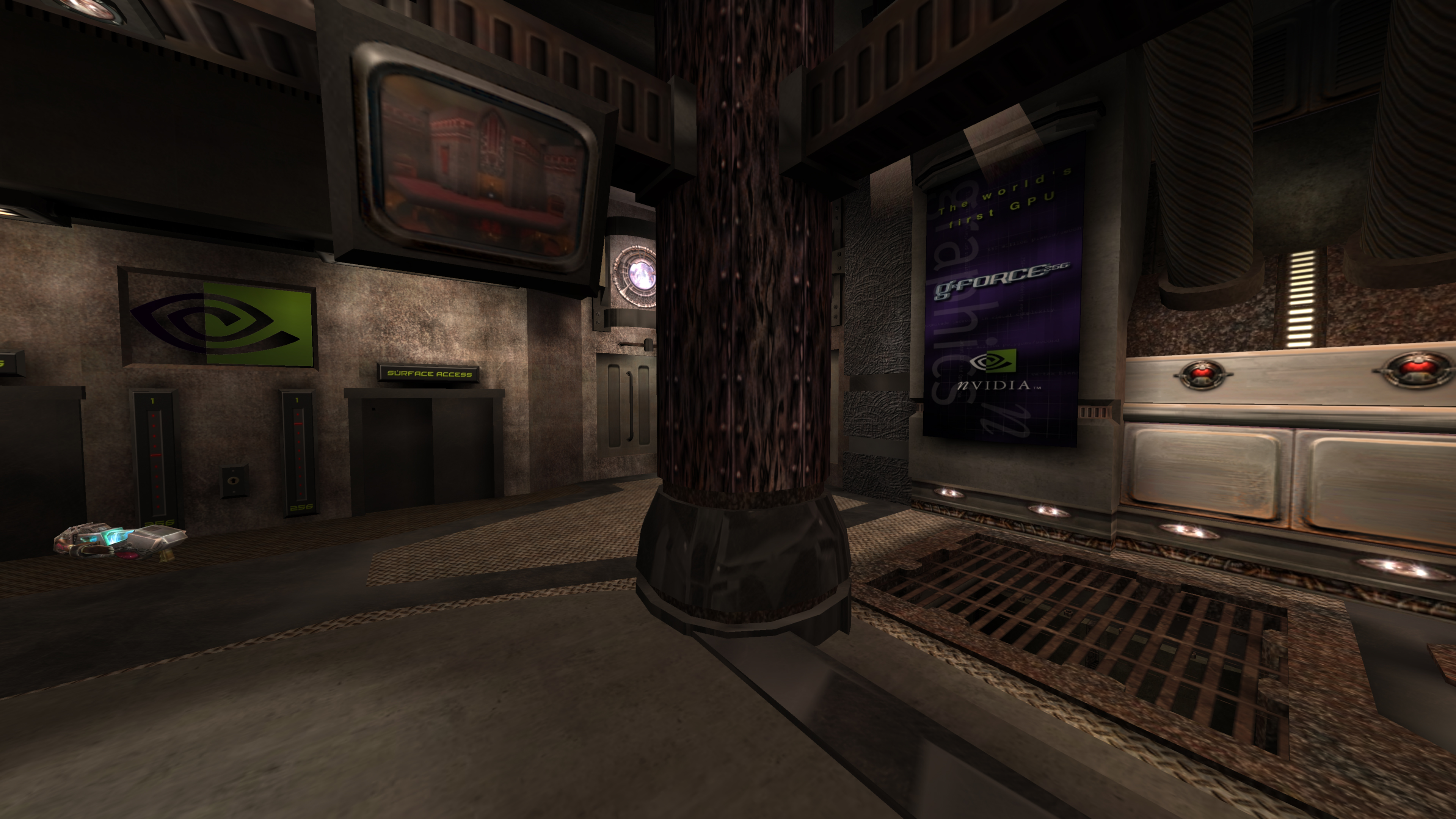 这张地图拥有普通“雷神之锤 III 竞技场 (Quake III Arena)”地图四倍的细节量,Eurogamer 评价道:“对细节的极致关注令人惊叹,固定物体的螺栓、平滑弯曲的走廊、精细的楼梯和扶手栏杆,甚至在一个房间内还有 NVIDIA 芯片工厂,传送带上源源不断地产出小小的 NVIDIA GPU。”
