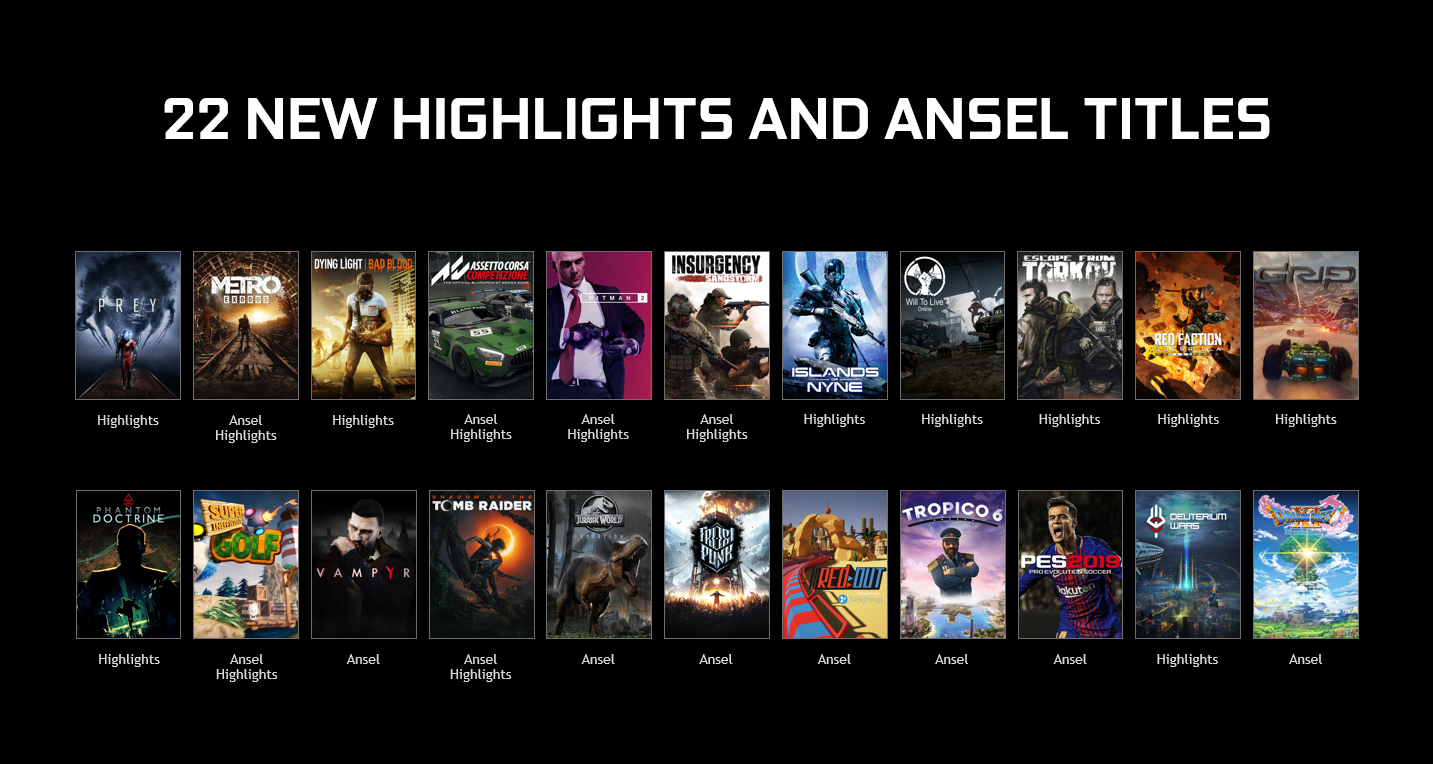 “战地 5 (Battlefield V)”“神力科莎 (Assetto Corsa Competizione)”“地铁:离去 (Metro: Exodus)”、“杀手 2 (Hitman 2)”以及其他几款游戏将采用 Photo Mode,从而将原生支持 Photo Mode 的游戏总数增加至 66 个。此外,将有 15 款游戏采用 Highlights,其中包括“战地 5 (Battlefield V)”、“地铁:离去 (Metro: Exodus)”、“杀手 2 (Hitman 2)”、“掠食:月球碰撞 (Prey: Mooncrash)”、“尼内岛 (Islands of Nyne)”、“幽灵教义 (Phantom Doctrine)”,以及“叛乱:沙尘暴 (Insurgency Sandstorm)”,采用 Highlights 支持的游戏总数增加至 38 个。有关各款游戏集成 Photo Mode 或 Highlights 的详情,请继续阅读本文。