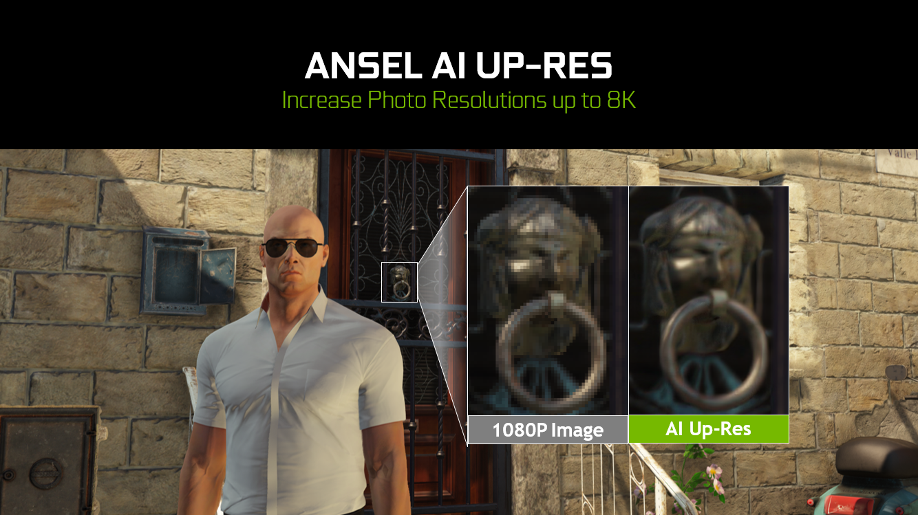 GeForce RTX 显卡配备的 Tensor Cores能够增强和加速 AI 功能,从而提升游戏体验。Photo Mode RTX 全新功能 AI Up-Res 可利用这些 Tensor Core 处理器来应用 AI 增强型分辨率缩放功能,便于玩家保存最高达 8K 分辨率的 NVIDIA Photo Mode 游戏内照片。