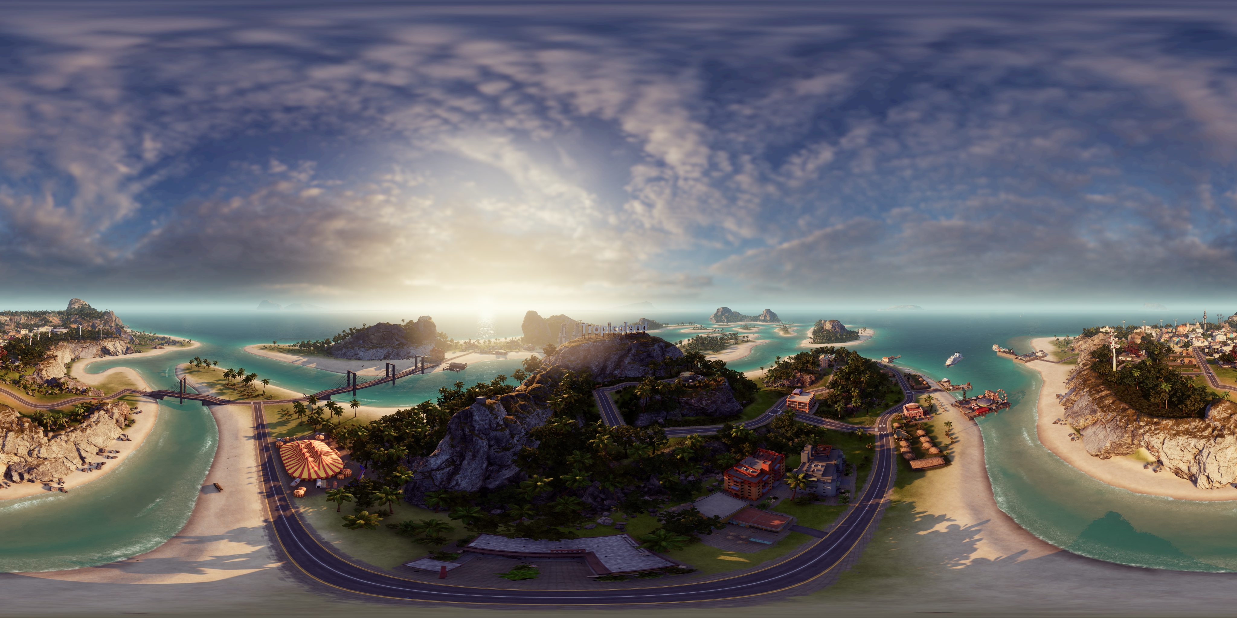 随着海岛帝国的规模逐渐扩大,玩家有时需要全力投入才能完全掌控局面。正因为如此,Photo Mode 还可为玩家截取类似于下面的全景图,佩戴任何 VR 头盔便可查看。