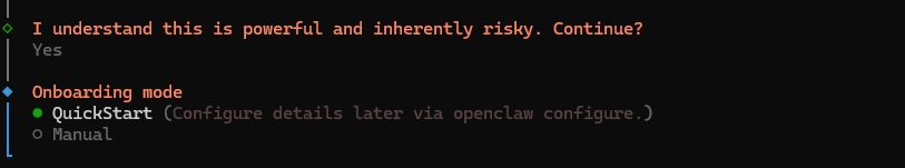 2.3. 继而将被提示选择 Quickstart (快速开始) 或 Manual (手动) 配置模式。选择 Quickstart (快速开始)。