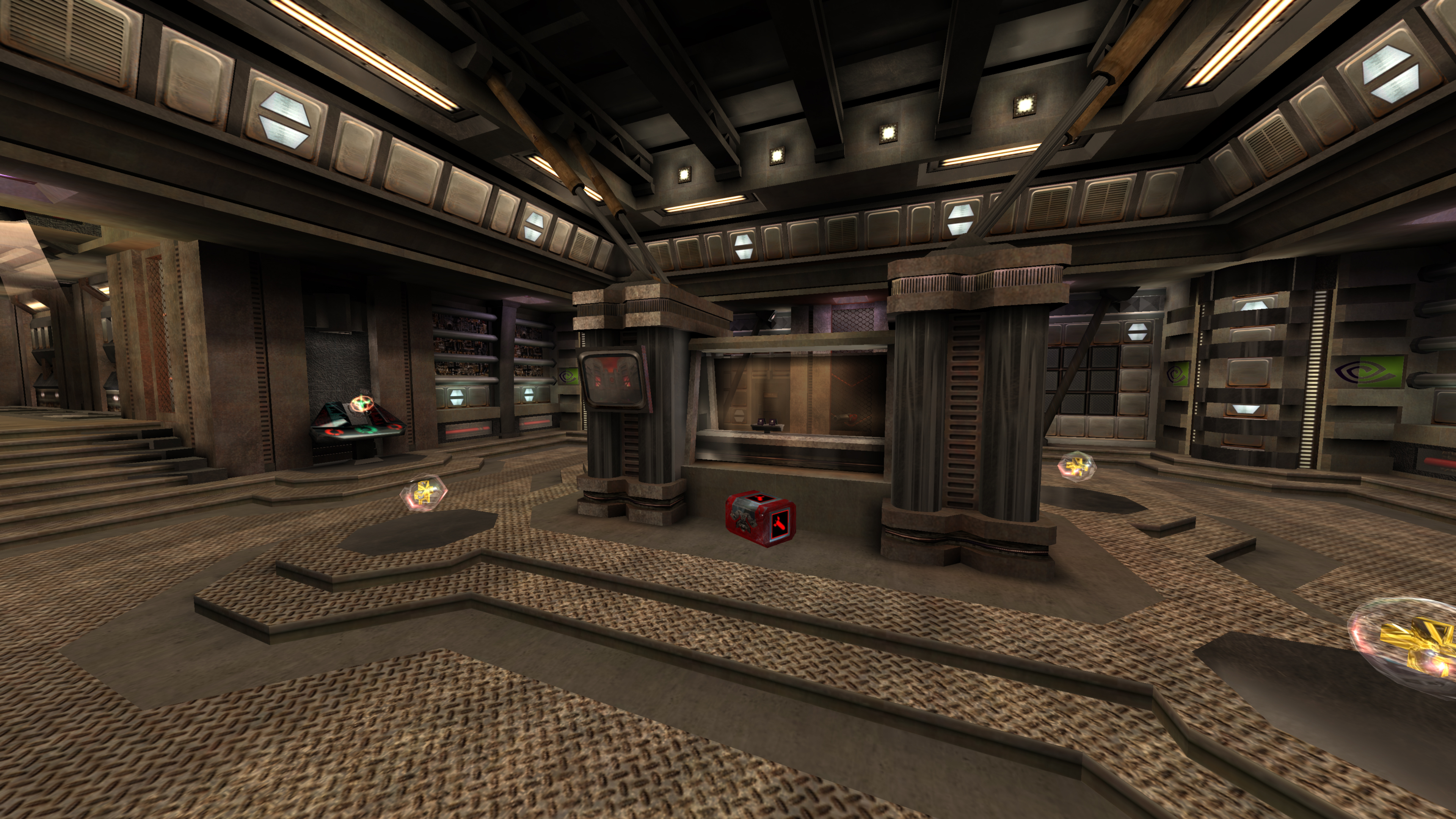 这张地图拥有普通“雷神之锤 III 竞技场 (Quake III Arena)”地图四倍的细节量,Eurogamer 评价道:“对细节的极致关注令人惊叹,固定物体的螺栓、平滑弯曲的走廊、精细的楼梯和扶手栏杆,甚至在一个房间内还有 NVIDIA 芯片工厂,传送带上源源不断地产出小小的 NVIDIA GPU。”